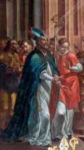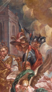 Historie: Obraz patří do série umístěné na stěnách lodi věnované dvěma svatým patronům kostela (a zároveň patronům zemí, ze kterých pocházeli): Stanislavu, krakovskému biskupovi a mučedníkovi, a Václav, český kníže a také mučedník. Přesnější datování obrazu a rámu neexistuje, proto je třeba uvést poměrně široký časový úsek mezi lety 1710 a 1720.