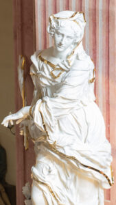 Materiał / technika drewno grunt polerowany (szypolen) w kolorze białym polichromia techniki stolarskie i snycerskie złocenia