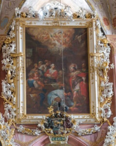 Charakterystyka: Decyzja o wykonaniu dla świdnickiej świątyni wielkich malowideł ilustrujących życie jej patronów była oczywista ze względu na obecny w tym kościele żywy kult liturgiczny wymienionych świętych. Jezuici ufundowali tylko jeden obraz, zaś pozostałe sfinansowali m.in. przedstawiciele śląskiej arystokracji. Do tej grupy należy omawiane malowidło, którego ofiarodawcą był Christoph Ferdinand hrabia von Nimptsch. Obrał on dość typową drogę kariery w służbie Habsburgów, ale dysponował też znaczną fortuną odziedziczoną po przodkach. Obraz, którego powstanie sfinansował, bardzo długo uchodził za dzieło Jeremiasa Josepha Knechtla wymienianego w jezuickich archiwach jako autor obrazów z życia śś. Stanisława i Wacława. Dopiero niedawne badania Emilii Kłody, autorki monografii legnickiego malarza wykluczyły stanowcze jego autorstwo w stosunku do tego dzieła (podobnie sprawa się przedstawia się w odniesieniu do jednego z przedstawień ilustrujących scenę z życia św. Stanisława – Św. Stanisław rozdaje jałmużnę). Oznacza to, że przy wykonaniu serii wielkich obrazów z nawy jezuici zatrudnili jeszcze innego artystę śląskiego. Wreszcie trzeba dodać, że do niedawna błędnie interpretowano temat dzieła, co wynikało zapewne z utrudnionego dostępu do wysoko zawieszonego malowidła.